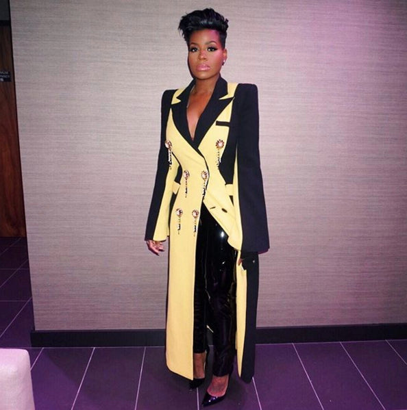 Hennessy Carolina wears the Heather Tailored Coat and mini skirt to the Video Music Awards