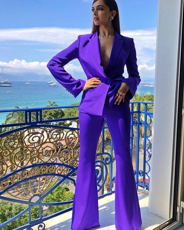 Deepika Padukone wears the Gemma Suit in Ultraviolet while in France for the Cannes Film Festival