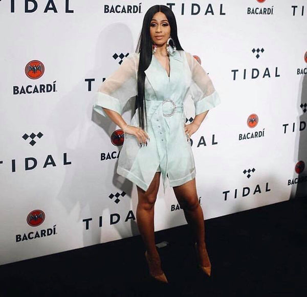 Cardi B wears the Charming Dress & Hoop Earrings on the Tidal X Brooklyn Benefit Concert Red Carpet