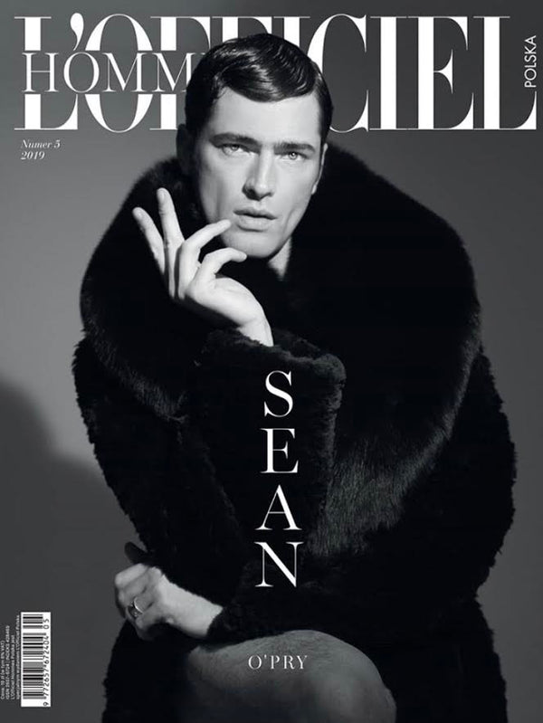 Male model Sean O’Pry wears Victoria Hayes fur coat on the cover of L’Officiel Poland April 2019
