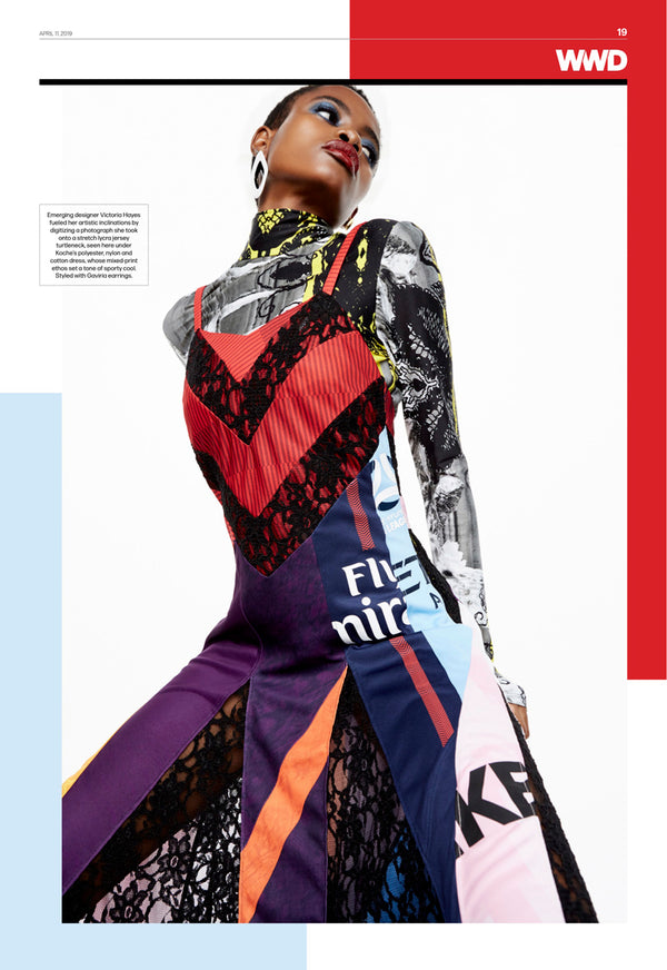 Victoria Hayes Fall 2019 printed mock neck top featured in WWD’s “Mixed Message” editorial