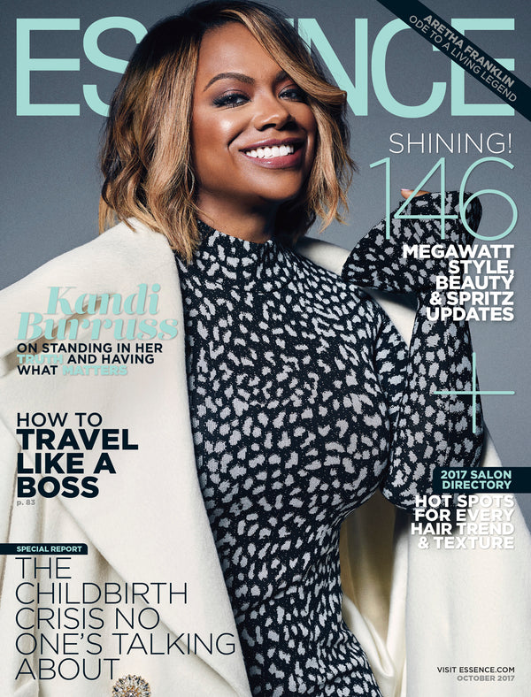 Kandi Burruss on the cover of Essence Magazine wearing Victoria Hayes Ivory Alpaca Huntress Overcoat